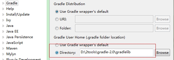 1.上Grandle官網下載Gradle,地址:http://www.gradle.org/downloads ![]() 如果只是運行可以只下載bin,為了擴展開發還是下載all。 2.下載完畢,直接把zip解壓,放到你電腦的軟件安裝目錄下,例如:D:\Program Files 3.在計算機/我的電腦設置環境變量,如果你下載了all,需要添加GRADLE_HOME指向gradle的安裝目錄的跟目錄,例如:D:\Program Files\gradle-2.0。然後需要在Path環境變量中加上gradle的bin目錄,例如:D:\Program Files\gradle-2.0\bin 4.以上步驟設置完畢,打開cmd,運行gradle -v就可以看到gradle的版本信息,標誌配置完成。 5.打開eclipse,Help-->Install new software,輸入http://dist.springsource.com/release/TOOLS/gradle 如果提示找不到地址,估計是被牆掉了,需要翻牆。如果找得到地址,選現實出來需要安裝的項,然後一直按下一步,安裝完畢,重啟eclipse就可以了。 6.創建一個web項目,在根目錄下創建一個build.gradle文件