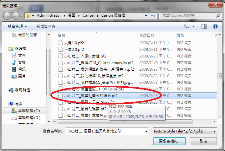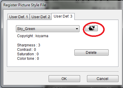 Canon.rar感謝valkyrie0 大的好心分享這些風格檔是用於DPP(Digital Photo Professional) 於DPP打開後,選副檔名為CR2的相片 然後在「調整工具箱」裡的「RAW影像調整」的「風格樣式」按「瀏灠」 148個風格檔名稱如下: akiiro-kouyou.pf2 BrightVivid.pf2 BSGL.pf2 BW_1.pf2 BW_2.pf2 BW_2010.pf2 BW_3.pf2 BW_4.pf2 BW_5.pf2 BW_H.pf2 BW_P.pf2 ching MV風格.atn Cluster-amaryllis.pf2 culolom_green(日式風格).vrd EtoC1.pf2 EyerBeautyShot2.pf2 EyerBeautyShot3.pf2 EyerJPLS.pf2 EyerJPLW.pf2 EyerSNAP.pf2 EyerTinge5.pf2 Eyer_Paint畫風_EyerPaint.pf2 Eyer_仿紅外風格_FakeIR.pf2 Eyer_半紅外風格_EyerFakeHalfIR2.pf2 Eyer_懷舊照片風格_EyerReminiscence.pf2 Eyer_淡彩風格_EyerTinge.pf2 Eyer_黑白風格_EyerBW99.pf2 Genesis_Panalog4_WIP.pf2 GhColor_2A.pf2 Hong Kong_尼康色彩_nikon.pf2 Howay 5.0.pf2 HUUKEI-Neutral.pf2 Kevin_JPkN-STUDIO-3.pf2 Kevin_和風風格_YamatoStyle.pf2 Kevin_戰爭風格_War.pf2 Kevin_日式風格_JapaneseStyle.pf2 Kevin_浪漫風格_RomanticStyle.pf2 Kevin_電影人像-STUDIO-1.pf2 Kevin_電影人像.pf2 King's SkyGreen.pf2 lockon_偽紅外風格_ir.pf2 lockon_單色紅_only red v.1.pf2 LOMO(高反差).pf2 LOMO.pf2 Lomo風格_E沖C(反轉負沖)_EtoC1.pf2 Lomo風格_Rikolog_LOMO.pf2 Marvels_Cine_V1.2_rel.pf2 minestyle淡雅.pf2 minestyle高反差.pf2 New Standard.pf2 NewEMERALD.pf2 Oil Color.pf2 Old-Town Neutral.pf2 olympus_blue.pf2 Portrait-Soft.pf2 RDP III.pf2 Restoring.lrtemplate RVP-100F(Mild).pf2 RVP-100F(Neutral).pf2 RVP-100F(Vivid).pf2 RVP-100F(Vivid)底片味濃.pf2 RVP.pf2 Step by step.pf2 Style.s superflat01.pf2 T6NA.pf2 TSUYAZAKURA.pf2 Velvia.pf2 velvia50.pf2 Wagokoro-Std.pf2 WW06_P-STUDIO.pf2 WW07_P-SNAPSHOT.pf2 人像1.0.pf2 人像2.0.pf2 仿萊卡風格.pf2 佳能L鏡螢石色彩-人像.pf2 佳能L鏡螢石色彩-標準.pf2 佳能L鏡螢石色彩-風景.pf2 佳能官方_影樓人像_P-STUDIO.pf2 佳能官方_快拍人像_P-SNAPSHOT.pf2 佳能官方_懷舊_NOSTALGIA.pf2 佳能官方_清晰_CLEAR.pf2 佳能官方_秋天色調_AUTUMN_HUES.pf2 佳能官方_翠綠色_EMERALD.pf2 佳能官方_黎明和黃昏_TWILIGHT.pf2 富士RVP-100F(Mild)淡色.pf2 富士正片(亮度1格)(室內人像)RDPIII.pf2 富士正片(淡色)_RVP-100F(Mild).pf2 富士正片(濃色)_RVP-100F(Vivid).pf2 富士正片(自然)_RVP-100F(Neutral).pf2 富士正片_RDP III.pf2 富士正片_RVP 100F.pf2 富士正片__Velvia by Giosi 1.0.pf2 富士正片__velvia50.pf2 對比加強.pf2 小山壯二_人像8_女性.pf2 小山壯二_我的標準10_標準風景.pf2 小山壯二_我的標準11_基準色(用於jpg直出).pf2 小山壯二_我的標準9_懷舊正片(濃色).pf2 小山壯二_新標準15_New Standard.pf2 小山壯二_新翠綠16_NewEMERALD.pf2 小山壯二_朱頂紅14_Cluster-amaryllis.pf2 小山壯二_油畫色彩13_Oil Color.pf2 小山壯二_逐步12_Step by step.pf2 小山壯二_風景1_藍天和綠地.pf2 小山壯二_風景2_天空_Sky.pf2 小山壯二_風景3_楓葉.pf2 小山壯二_風景4_雪景色.pf2 小山壯二_風景5_艷櫻.pf2 小山壯二_風景6_海景.pf2 小山壯二_風景7_遠景攝影(類似CLEAR).pf2 小木_300壯士風格_v0.2.pf2 小木_300壯士風格_v0.3.pf2 小木_零3_ZERO_V0.3.pf2 德恩_紅外風格_IR.pf2 日式.pf2 日式暖調風格(色調較溫暖).pf2 日式輕風格.pf2 日本_hade.pf2 日本_Howay 5.0.pf2 日本_My風景_My_HUUKEI-Neut.pf2 日本_nCAFE01(拍攝咖啡適用).pf2 日本_T6NA.pf2 日本_Wagokoro-Std.pf2 日本_人像_proctor v1.0.pf2 日本_人像_proctor v2.0.pf2 日本_城鎮_TOWN.pf2 日本_夕陽_BURNING.pf2 日本_奧林巴斯藍_olympus_blue.pf2 日本_擴展_extender(白色適用).pf2 日本_柔調人像_Portrait-Soft.pf2 日本_標準值風景_landscape2.pf2 日本_紅_ichigomoe Red1.pf2 日本_紅_ichigomoe Red2.pf2 日本_老鎮_Old-Town Neutral.pf2 日本_花_FLOWER.pf2 日本_花嫁-白_Hanayome-White(婚攝適用,擴展動態範圍).pf2 日本_重點測光_autolightopt.pf2 正片亮度減一EtoC1.pf2 沉重.pf2 綠式憂慮.pf2 美肌風格.pf2 美肌風格3.pf2 調亮.pf2 調暗.pf2 降低對比.pf2 電影懷舊.pf2 黑白速寫風格.pf2 一開始先把相機關機! 找出機身與電腦連結的接孔! 使用傳輸線把單眼與電腦透過USB連結! ![]() 接著打開單眼的電源開關! 電腦就會抓到您的機身型號(抓不到…請去官方網站抓個驅動吧!) 連結之後。CANON 5D銀幕會亮! 打開安裝好的EOS Utility程式。 下載這軟體.. 其實 單眼的光碟裡面就有了! 執行EOS Utility後。 有四個選項。 選第三個Camrra setting/Remote shooting 。 按下第三個選項之後。跳出來的視窗就會跟您的機身的設定值是一樣的! ![]() 選 Picture Style這格! ![]() 然後跳出的選單。就是您單眼裡面的風格檔清單。我們要改的當然就是機身內部的自訂風格1~3。我就先以設定2來講。按下User Def. 3 ![]() 會跳出 自訂3 (User Def. 3)的設定值。 按下 Register User Defined style! ![]() 跳出 自訂風格3 所載入的風格檔案! 按下"開啟"的按鍵之後。找到要載入的風格檔,副檔名為pf2。然後選 開啟舊檔! ![]() 我選"小山壯二_風景1_藍天和綠地風格檔"的設定之後。 按ok。 就把這風格檔成功的傳入相機裡面當自訂風格3! ![]() 然後看一下單眼的機身的風格(Picture Style)的使用者定義3 是不是 變更為 SKY_GREEN。就成功啦! ![]() 轉載請註明出處 |