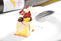 鴨肝慕斯襯藍莓香橙/1450元套餐冷盤+150元▲將鴨肝做成立體狀,可搭配法式麵包食用。