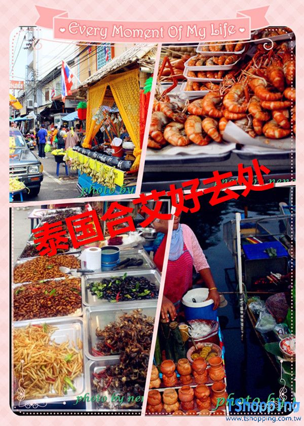 合艾『水上市場售賣便宜又多樣化美食 。該市場是由泰國當地人在週末時售買泰國美食的地方。水上市場 ,距離合艾大概 5-6 公里。這美食中心座落於河畔旁,食物由小舢板船載往河畔,同時銷售經營方式一律在船上。水上市場只在星期五,星期六、星期日,營業時間從下午3時至晚上9時。食物味道還是相當但不錯。