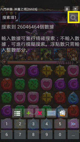 由於我們必須先找出要修改的數值,因為要找出血量,所以要藉由"被打"的方式,看出被扣血量變化,所以先找一場最低難度的關卡去被打,轉珠之後被打,接著點左上角的八門浮動視窗