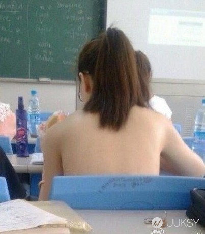 無獨有偶,之前也有鄉民在臉書 po 出 有女學生在教室睡覺,猛然一看以為是全裸!!(鼻血噴射),結果仔細一看...原來是肉色,突然有點失落感...(喂!)