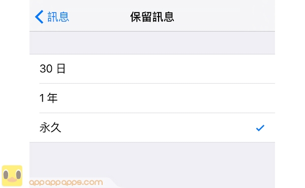 如果你習慣使用 iMessage 和短訊,就會積聚很大容量的舊訊息。只要設定自動清除訊息,就不會發生這個問題了:iOS 設定 – 訊息 – 保留訊息 – 30 日 / 1 年。