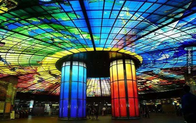 在高雄除了騎車或開車外,也可以搭乘高雄捷運。位在高捷的交叉點,樞紐的美麗島站有不少特別設計的建築景觀,其中最引人讚嘆的便是這面玻璃穹頂,讓人怎麼看也不厭倦。