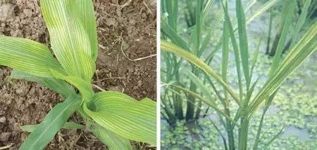 鐵(Fe)的生理作用:是細胞色素、血紅素、鐵氧還蛋白及多種酶的重要組分,在植物體內起傳遞電子的作用,是葉綠素合成中必不可少的物質。 植物缺鐵症狀:在植物體內不易移動,缺鐵時首先表現在幼葉上。表現為脈間失綠,嚴重時整個幼葉呈黃白色,缺鐵常在高PH土壤中發生。 植物缺鐵實例: