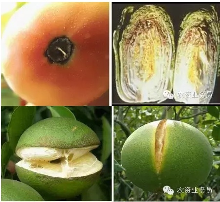 硼(B)的生理作用:硼是影響生殖器官發育,影響作物體內細胞的伸長和分裂,對開花結實有重要作用。 植物缺硼症狀:頂端停止生長並逐漸死亡,根係不發達,葉色變綠,葉片肥厚,皺縮,植株矮化,莖及葉柄易開裂,脆而粗,花發育不全,花而不實,蕾花易脫落。 植物缺硼實例: