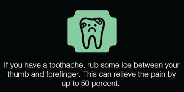 9. 如果你有牙痛的話,就在虎口處用冰塊摩擦,這樣可以減少最多50%的疼痛。