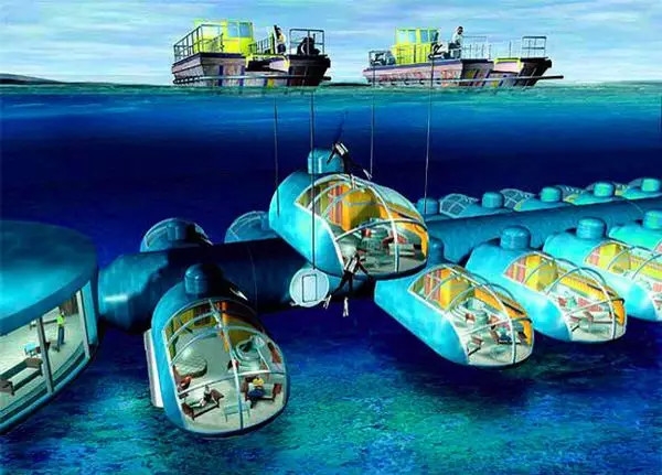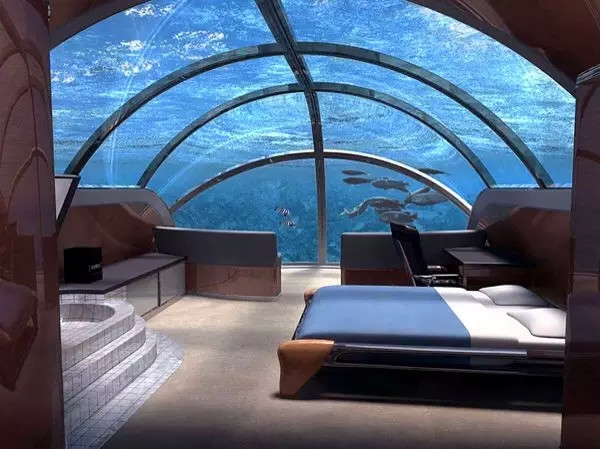 位於斐濟群島共和國的“海神海底度假村”(The Poseidon Undersea Resort )是目前世界上第一個海底度假村,遊客可以在距離海平面40英尺(12米)以下的奢華環境中度過浪漫優雅的假日。