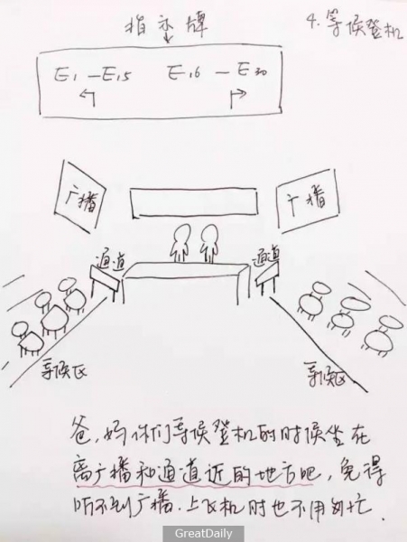 對於英文不好,又從來沒有出過國的人來說,第一次出國是很麻煩的事情,特別是出入境的時候。日前,中國有一對快60歲的父母,想要飛往美國探望剛剛生下孩子的女兒,但是沒出過國又不會英文的他們不曉得該怎麼做,而女兒貼心的替他們手繪了圖文並茂的「出國超詳細攻略」,攻略強大的程度讓網友讚翻了!