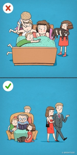 7.孩子比較重要。身為家長當然應該照顧小孩,但是也別忘了你除了為人父母之外也是他人的另一半。但一個月最少還是要抽出一天,花點時間與另一半獨處,才能夠維系感情。