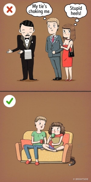 8.一起參加聚會。陪伴另外一半應該建築在自己能真心享受的事物上,如果你覺得躺在沙發上看電視度過周末很舒服,也不需要勉強自己一定要出門參加聚會。