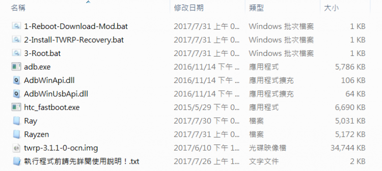 U11簡易刷機包 《本程序只要簡單三個步驟讓你輕鬆ROOT》 下載完解壓縮後會看到以下的檔案,執行程序已經相當簡單的列在裡面。