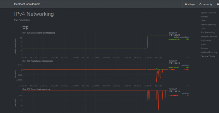 好的,這樣就應該安裝成功了,按照默認安裝的話,Netdata已經自動啟動了,監聽在19999端口,通過瀏覽器中輸入:http://你的IP地址:19999訪問。注意:記得把19999端口開放防火牆。