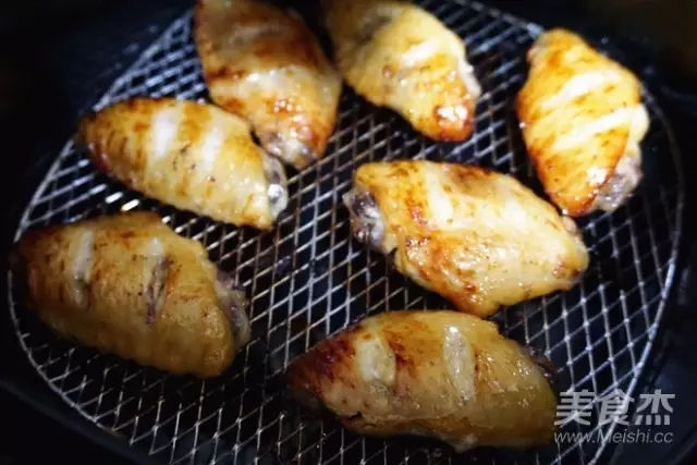 7.空氣炸鍋或者烤箱,180度預熱5分鐘,接著放入雞翅,空氣炸鍋烤12分鐘,烤箱16-20分鐘。雞翅表面上色即可。