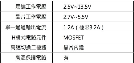 TB6612FNG是東芝生產的馬達驅動與控制IC,內部包含兩組H橋式電路,可驅動和控制兩個小型直流馬達,或者一個雙極性步進馬達。