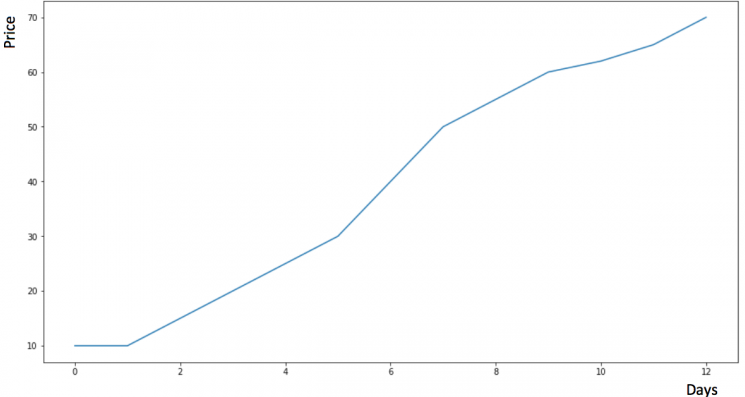 我們假設y軸表示某個物品的價格,x軸表示時間(天)。