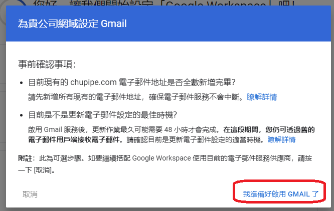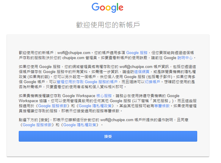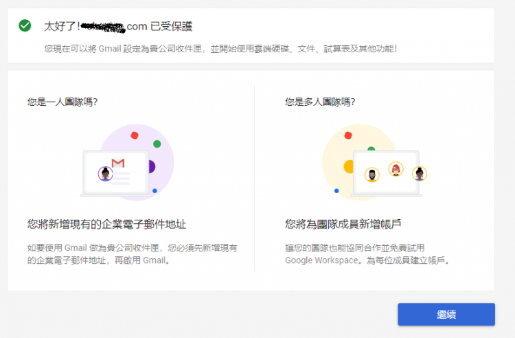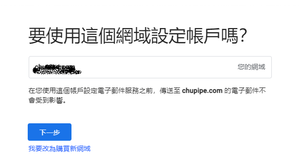 找了google後發現要到google workspace申請帳號驗證網域