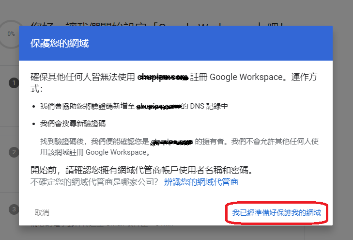 點 我已經準備好保護我的網域