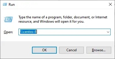 步驟 5) 從 Windows 機器存取 Samba 共享在 Windows PC 上,按 Windows 鍵 + R 啟動「執行」對話方塊並鍵入 - \\hostname-of-samba server