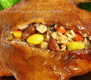 6 把鴨子取出裝盤,蒸鴨盤裏的湯汁到入鍋中,燒至濃稠後澆在八寶鴨上即可.